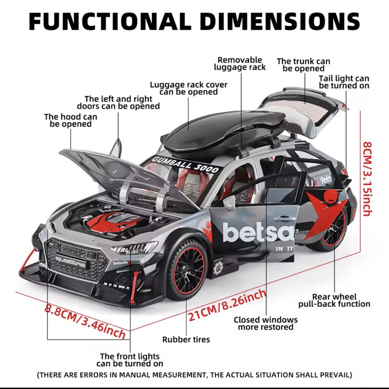 ماشین اسباببازی آئودی RS6 اسپرت با باربند، گزینهای جذاب برای علاقهمندان به خودروهای لوکس و اسپرت است. این محصول با الهام از خودروی پرطرفدار Audi RS6 طراحی شده و جزئیات ظاهری دقیق، حس یک خودروی واقعی را به خوبی منتقل میکند.وجود باربند روی سقف خودرو جلوهای متفاوت و کاربردی به طراحی داده و امکان بازیهای متنوعتر و خلاقانهتری را برای کودک فراهم میکند. طراحی اسپرت، بدنه خوشساخت و ظاهر مدرن، این ماشین را به انتخابی مناسب برای بازی و هدیه تبدیل کرده است